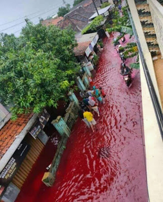 Genangan air di wilayah Pekalongan, tepatnya di Kelurahan Jenggot Kecamatan Pekalongan Selatan Kota Pekalongan sedang menjadi sorotan. Pasalnya, banjir yang melanda wilayah itu, dan paling tampak di Jalan Pelita 3 dan Jalan KH Akrom Khasani (gang Ponpes Syafi’i Akrom) berwarna merah darah, Sabtu (6/2).